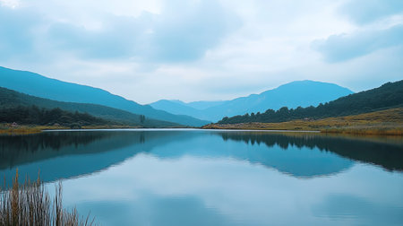 Lake scenery amidst tranquil mountains and waters