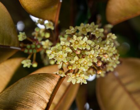 Mango blossoms on the mango tree. The flowers bloom before the mango fruit matures.