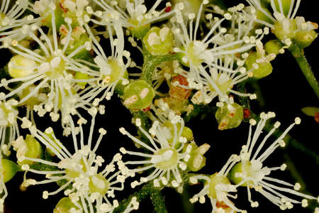 Japanese Hydrangea (Hydrangea petiolaris). Inflorescence Detail Closeup