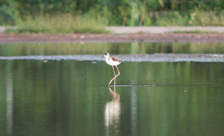 cute water bird. Black winged Stilt. Colorful nature habitat background. Black winged Stilt, Himantopus himantopus.
