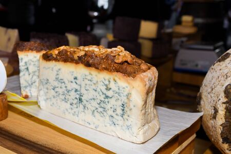 Cheese collection, French blue cheese roquefort from caves of Roquefort-sur-Soulzon, France, close up