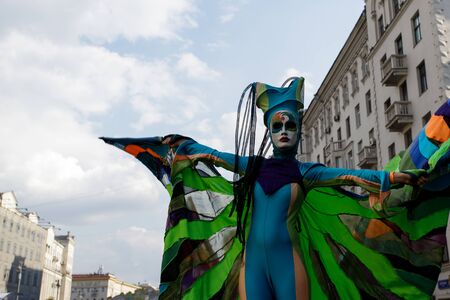 MOSCOW, RUSSIA - 18 MAY: Participant of annual carnival in Moscow in Ermitage Garden - man in costume. Moscow, 18 may, 2013