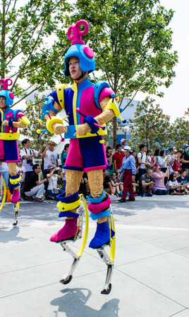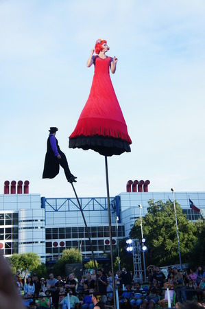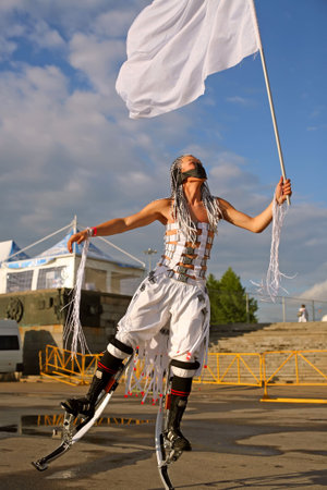 Entertainers on stilts at Belgrade Boat Carnival held on Avgust 29 2015 at Belgrade,Serbia