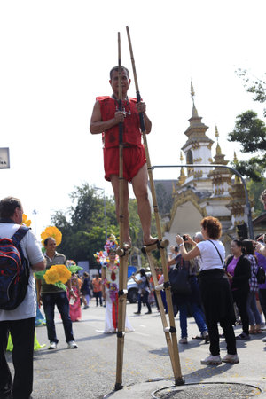 BANGKOK, THAILAND - DECEMBER 13: Member of the Dutch artist group Teatro Pavana performing their Venetian style stilt show at the International Street Show in Bangkok, Thailand on December 10-13, 2009.