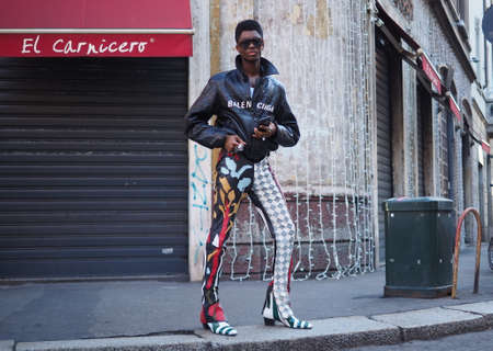 Milan, Italy, 12 January 2020: Fashion blogger posing for photographers after Etro fashion show during Milano fashion week 2020