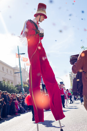 Menton, France,Provence-Alps-Azure Coast-Mar 02, 2025: Traditional Parades of citrus floats and animated by groups. Carnival parade