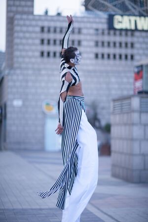 Mulhouse - France - 18 October 2020 - Portrait of made up artist performiing at the street scene festival