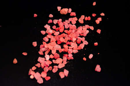 Pink red rough pebbles used in a spa to relax in one's own home over a black background