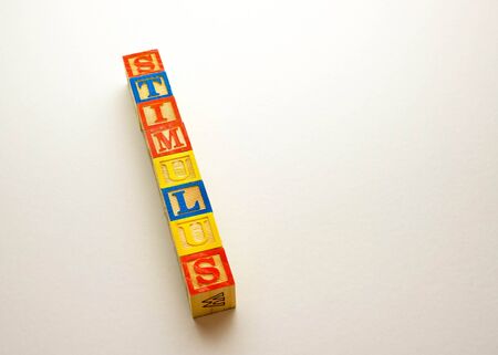 Wooden alphabet block on white. Conceptual economic stimulus by government especially during crisis or Covid-19. Focus on wooden block.