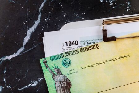 1040 Tax Form with Refund Check and bills US stimulus refund check