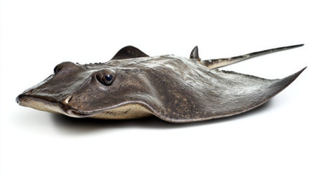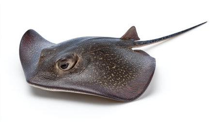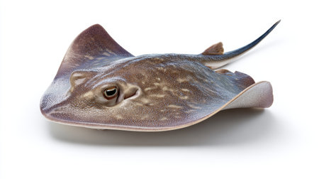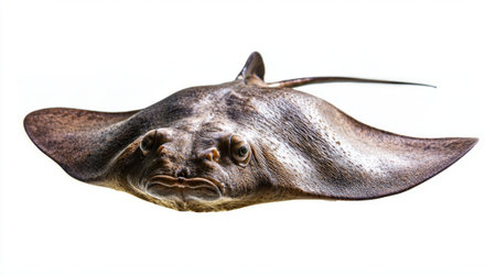 stingray Dasyatidae is isolated on a white background displaying its flat body shape distinctive fins and eyes emphasizing its unique characteristics.
