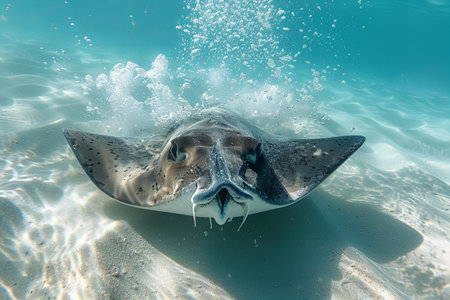 Graceful Underwater Encounter: Captivating Close-up of a Swimming Stingray
