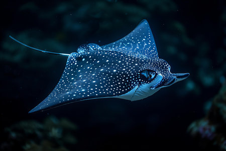 Majestic spotted eagle ray gliding gracefully through ocean waters.