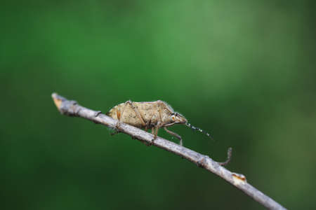 Brown marmorated stink bug in macro close up photo in natural habitat