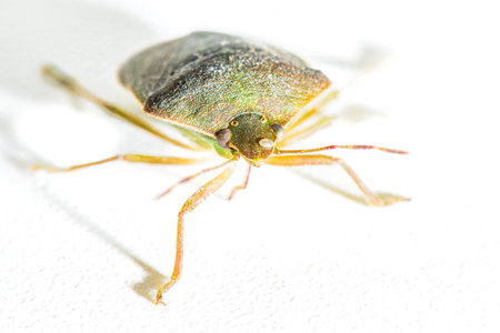 Stink bug or Shield bug facing the camera on a white background
