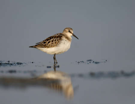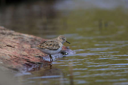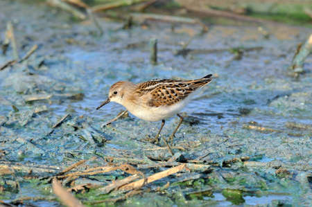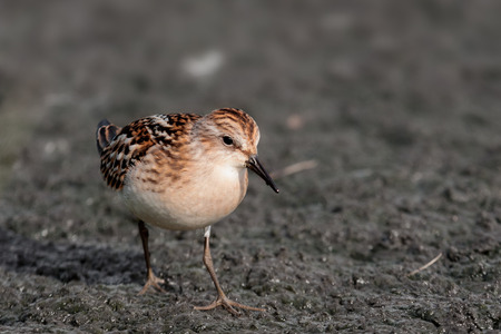 Little stint Sandpiper walking on a slimy beach