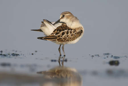 The broad-billed sandpiper (Calidris falcinellus) cleaning