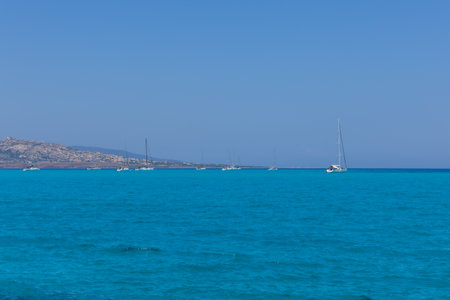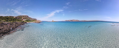Holidays in Sardinia,crystal sea and people in the sea,sardinian sea,view of beautiful sea in Stintino, Sardinia,Italy Paradise, tropical island,clear sea on summer with amazing sky background