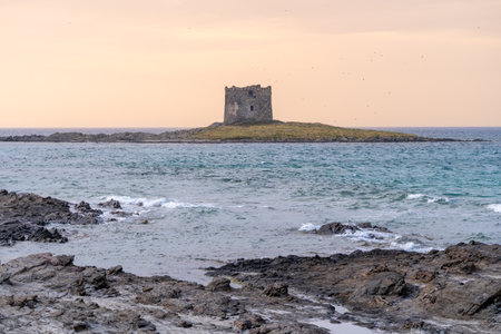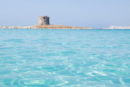 Caletta della Torre beautiful view of ruined tower on La Pelosa beach Sardinia Italy