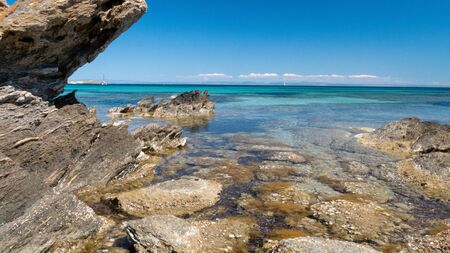 Blue and transparent sea in Porto Tramatzu beach, Teulada, Sardinia