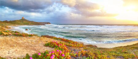 Sunset in San Giovanni di Sinis, Sardinia, Italy Spanish Tower of San Giovanni Cape San Marco