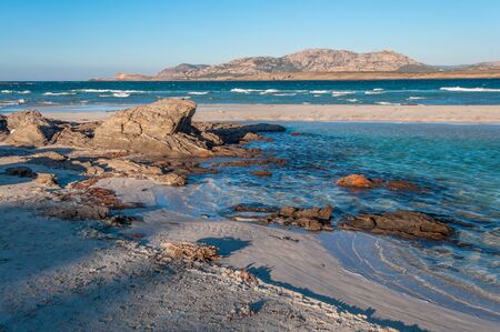 Stintino beach la pelosa in a sunny windy day of winter, sardinia