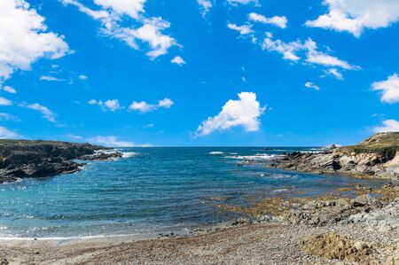 Beach of Rena di Ponente, Sardinia Island, Italy. Blue Sky. La Colba Bay.