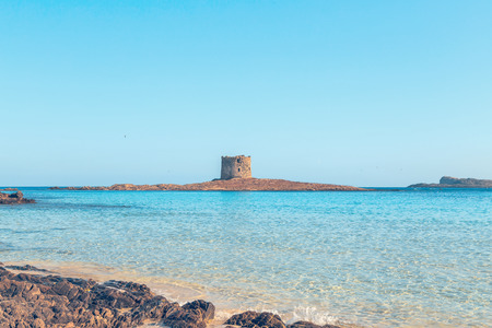 Amazing Pelosa beach, view of Pelosa Tower at Stintino, Sardinia italy