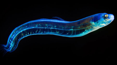 An AI generated illustration of a beautiful aquatic creature with luminescent body gliding through the water