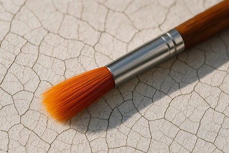 A paintbrush lies on a surface, ready for the next stroke