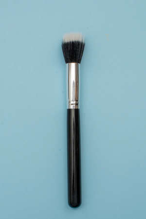 Makeup brush on blue background
