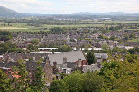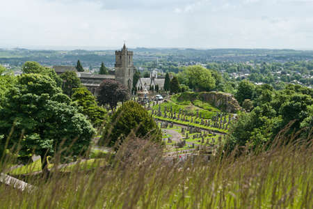 Meadows, graveyards, churches and iconic landmarks of the city of Stirling in Scotland