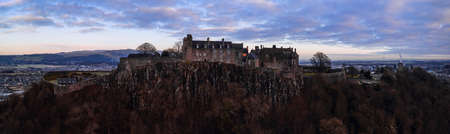 Winter aerial view of Stirling Castle on top of the rocky hill in central Scotland. It used to be a residence of Scottish kings.