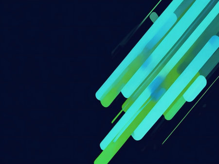 Vibrant diagonal neon lights on black background.