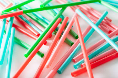 Drinking straws for colored background. Colorful plastic straws used for drinking water or soft drinks