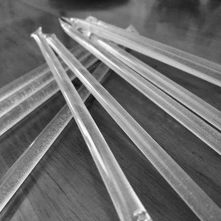 Colored plastic tubules for drinks. Wooden sticks for stirring drinks.