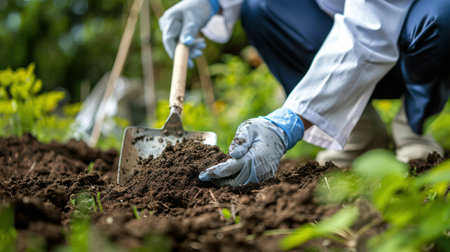 natural soil preparation with hand-mixed organic fertilizer at garden outdoor