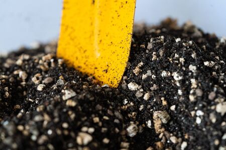 Fertile loam soil suitable for planting, soil texture background.Top view of fresh soil. Concept of global pollution, World Soil Day.