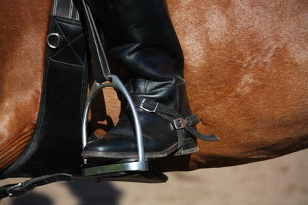Jockey riding boot in the stirrup