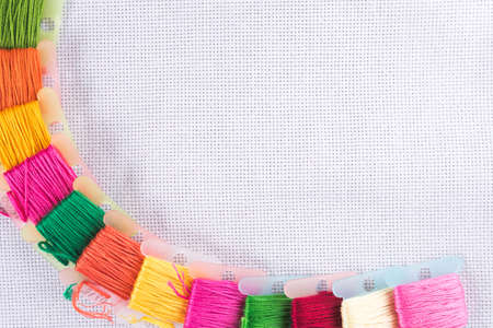Colored thread for embroidery on white canvas