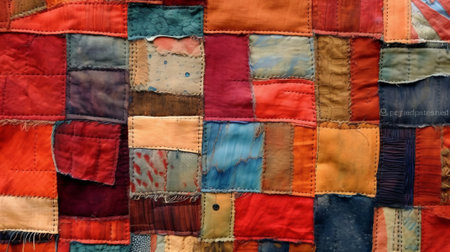 Colorful handmade patchwork quilt design, useful for backgrounds