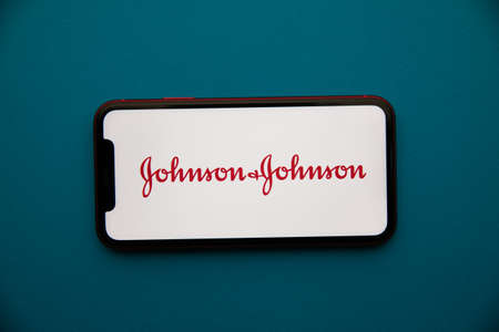 Tula, Russia - September 07, 2021: Johnson&Johnson logo on iPhone display