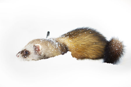 Ferret on snow posing and enjoying winter time in park