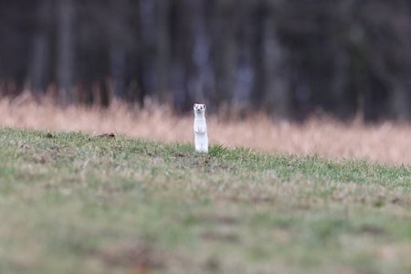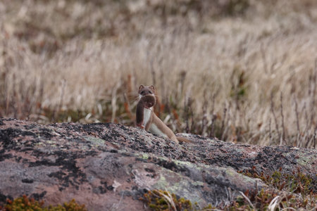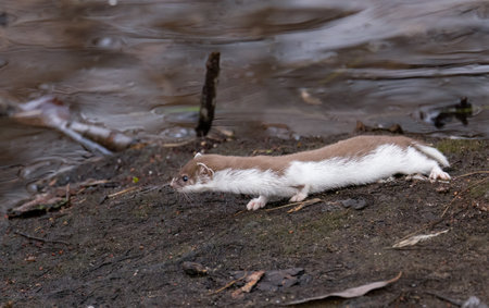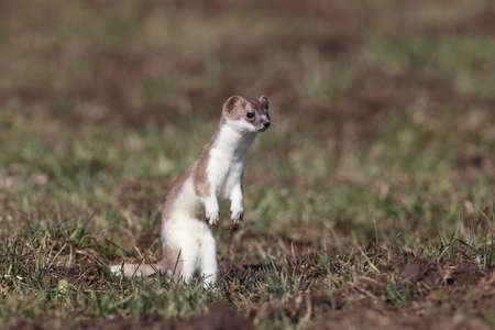 Least Weasel Mustela nivalis changing his fur color in early spring