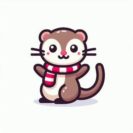 Cute little ferret with scarf. Cartoon animal. Vector illustration.