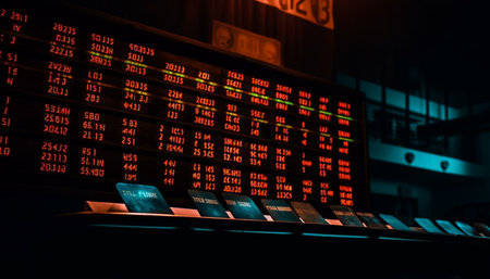 Dynamic digital interface illustrating stock market trends with red highlights and data analysis