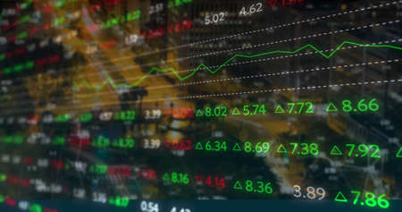 Stock market digital number chart business indicator stock exchange trading analysis investment financial on display crisis stock crash down and grow up gain and profits financial