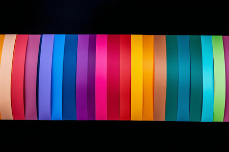 Vibrant Tape Strips: A Colorful Display on a Sleek Black Background, Captured from Above