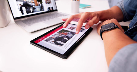 Watching News Online,Reading Digital Newspaper On Computer