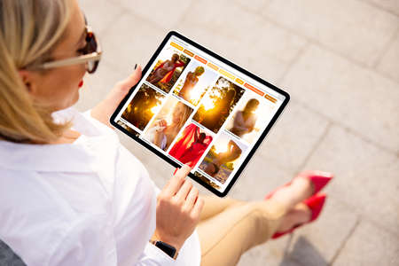 Woman browsing pinned photos online for ideas and inspiration on beautiful fashion photos.
